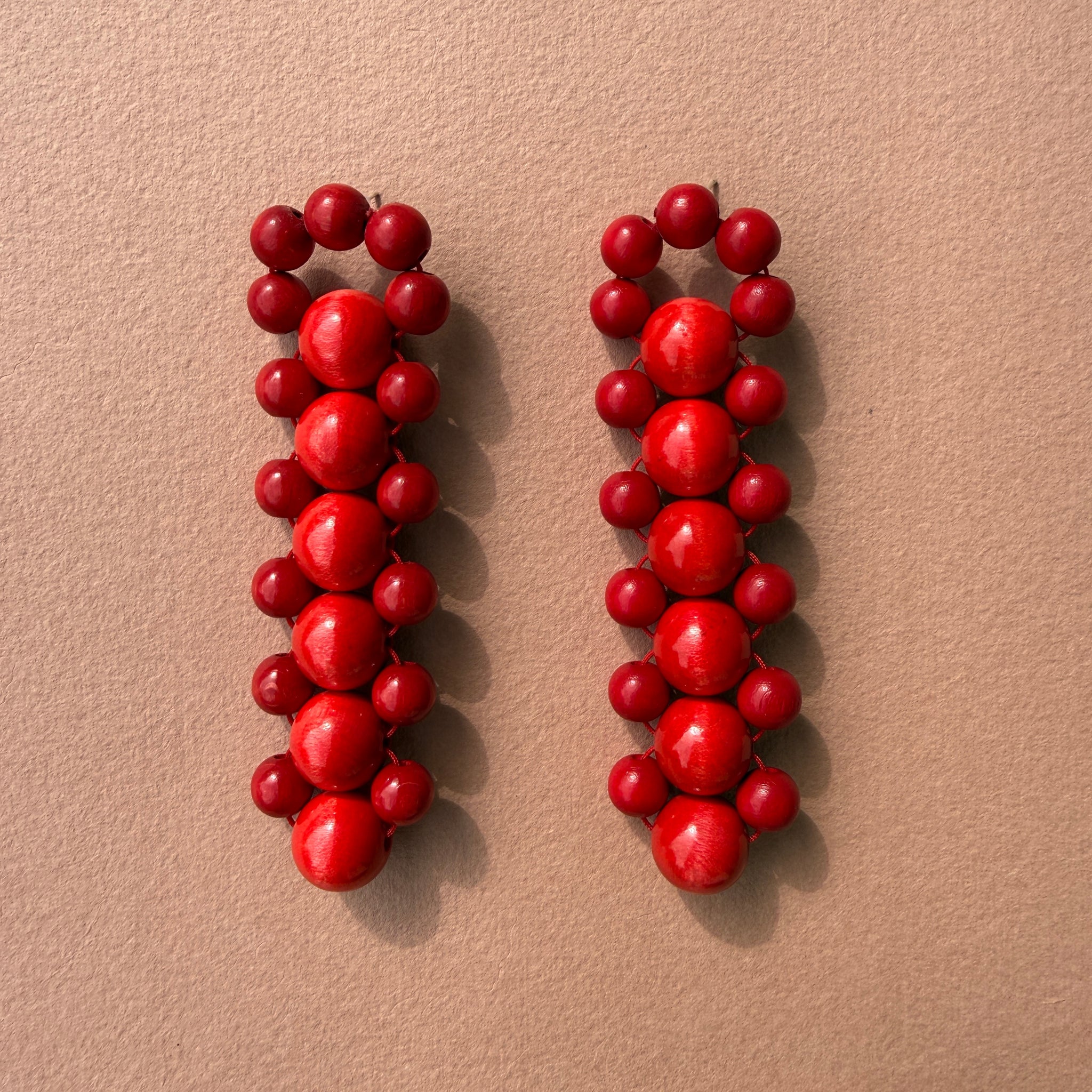 Handcrafted earrings made with wooden beads.