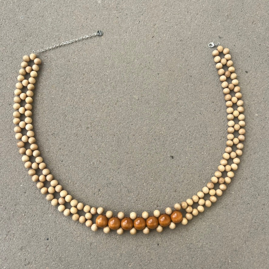Handcrafted belts made with wooden beads. Units are limited.
