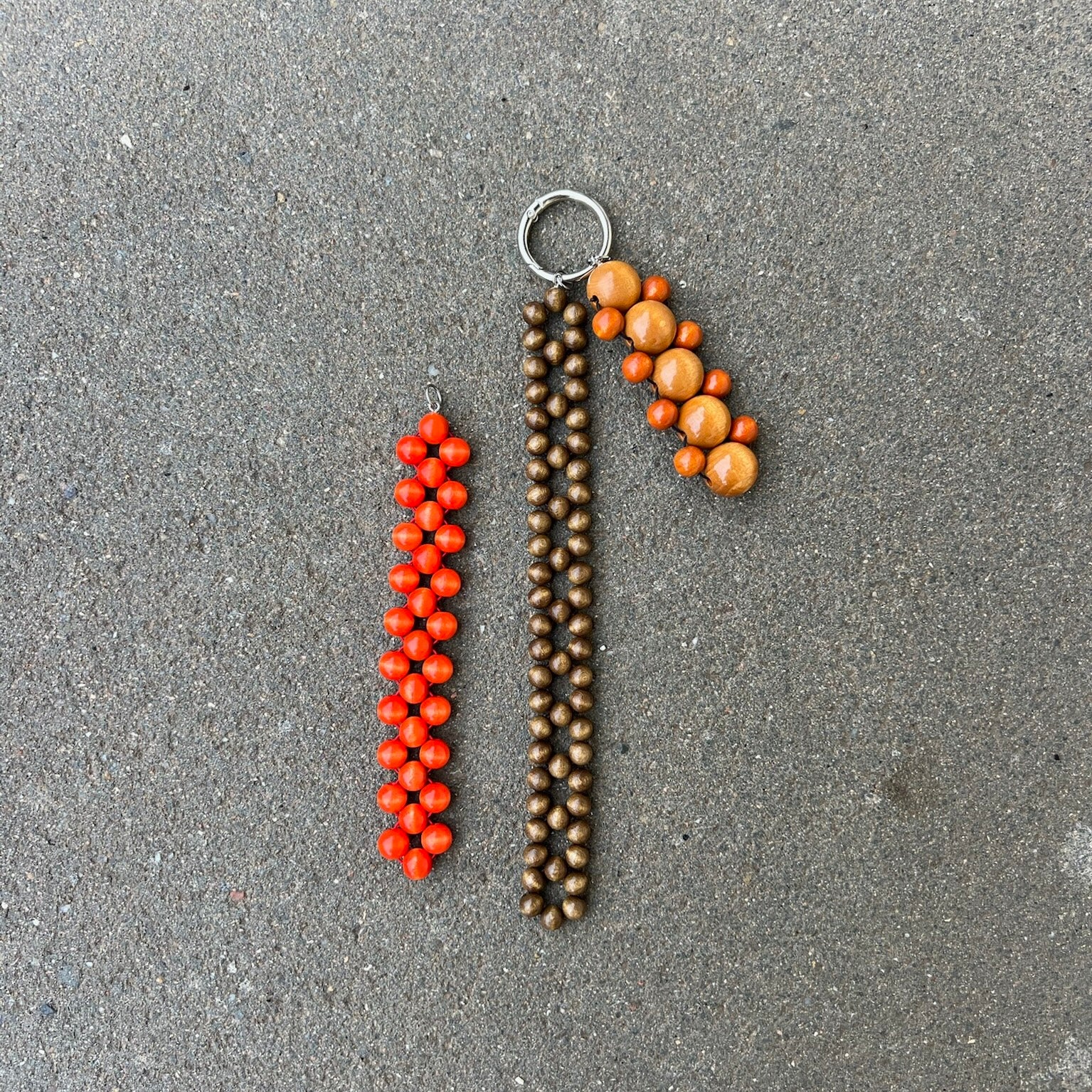 Handcrafted charm made with wooden beads. Unique piece.