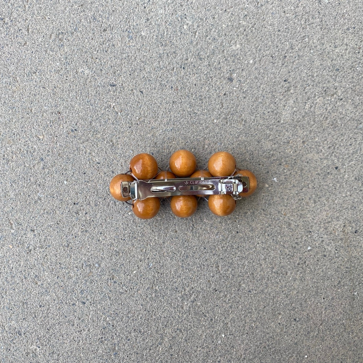 Handcrafted hair clip made with wooden beads. Units are limited.