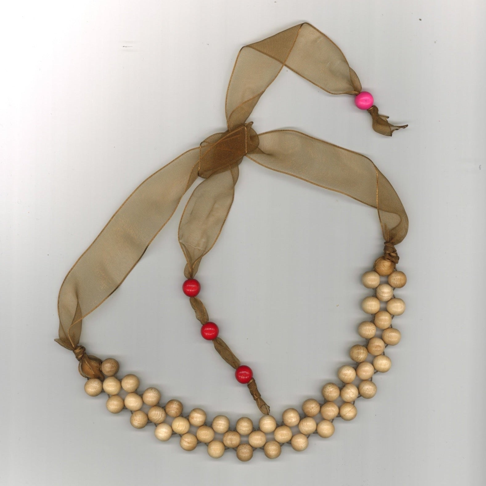 Handcrafted choker made with wooden beads. It has a strap  that allows you to play, making it longer or shorter, or even wrapping it around the wrist. Units are limited.