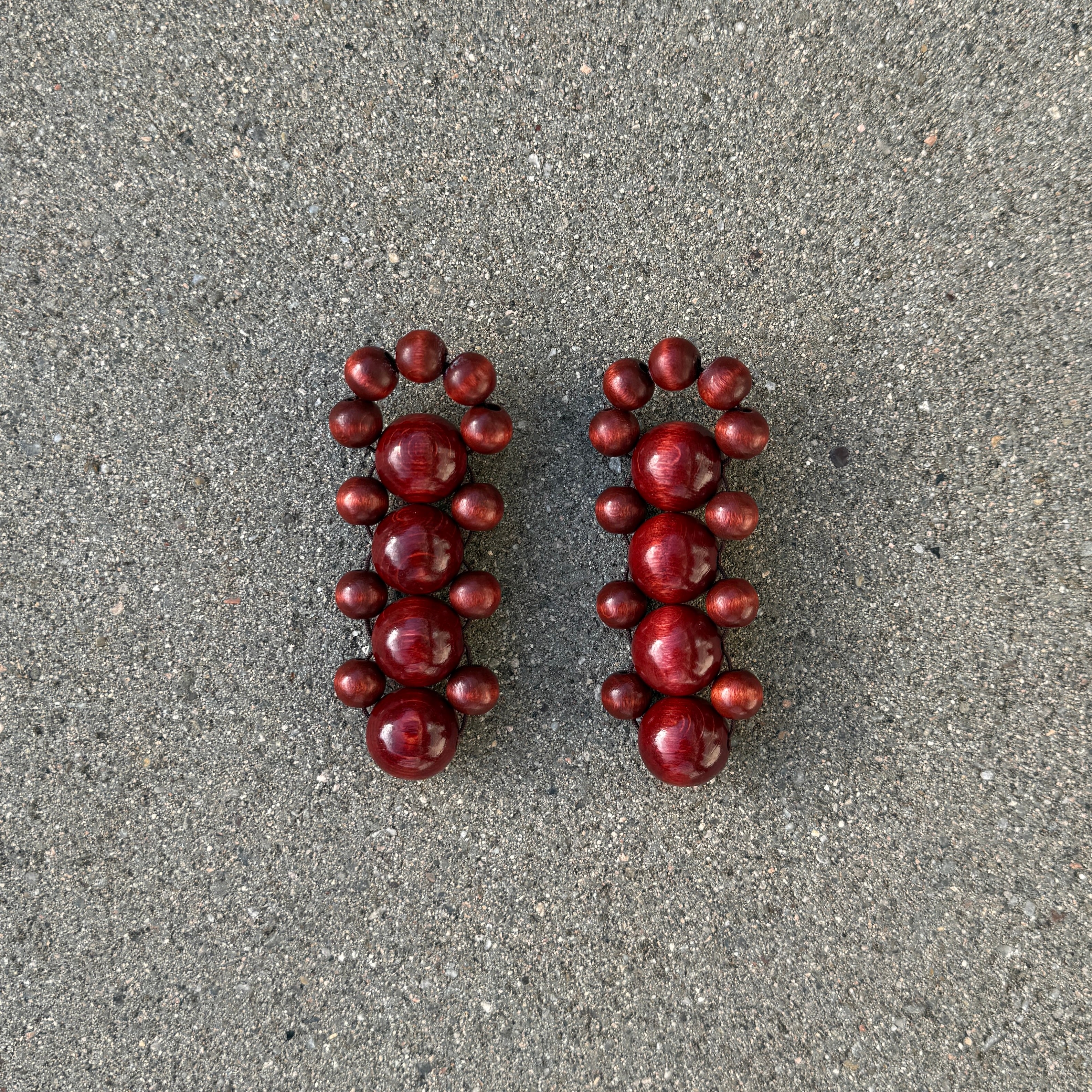 Handcrafted earrings made with wooden beads. Units are limited.